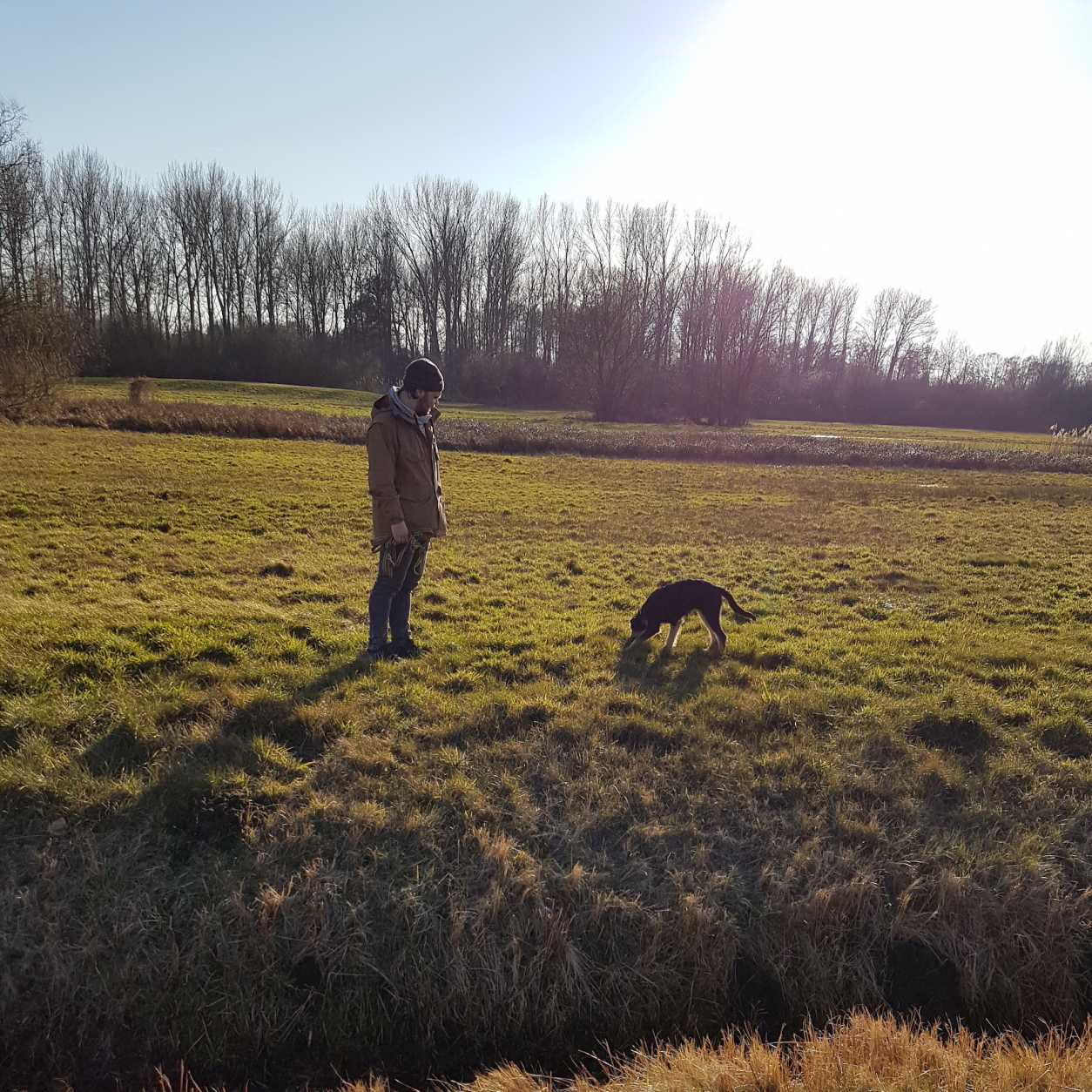 Seit Kindertagen von Hunden umgeben kam der eigene 2019. Im Ursprung bin ich Wissenschaftler, Biologe (M.Sc.) mit Spezialisierung in Ökologie, Naturschutz und Verhaltensbiologie. Als solcher arbeite ich in Teilzeit bei einer der weltweit größten Umwelt-NGOs im Querschnitt zwischen politischer Arbeit, Aktivierung und zielgerichteter Kommunikation an drängenden Naturschutzthemen unserer Zeit. Und ich bin Hundetrainer, ausgebildet durch Rother & Schulz und behördlich geprüft nach §11 TierSchG durch das Veterinäramt Berlin Pankow.