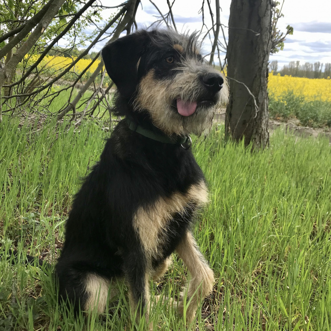 Kiwi kam in mein Leben, nachdem sie und ihre abgemagerten Geschwisterwelpen konfisziert und durch Tierschützer:innen mühevoll aufgepäppelt wurden. Man vermutete fälschlicherweise eine Labrador-Mixtur, anfängergerecht, ohne besondere Herausforderungen. Vier Welpen waren zögerlich beim ersten Treffen, einer hing in Sekunden furchtlos mit spitzen Zähnen in Ärmeln und Fingern. Darf ich vorstellen: der KIWINATOR.